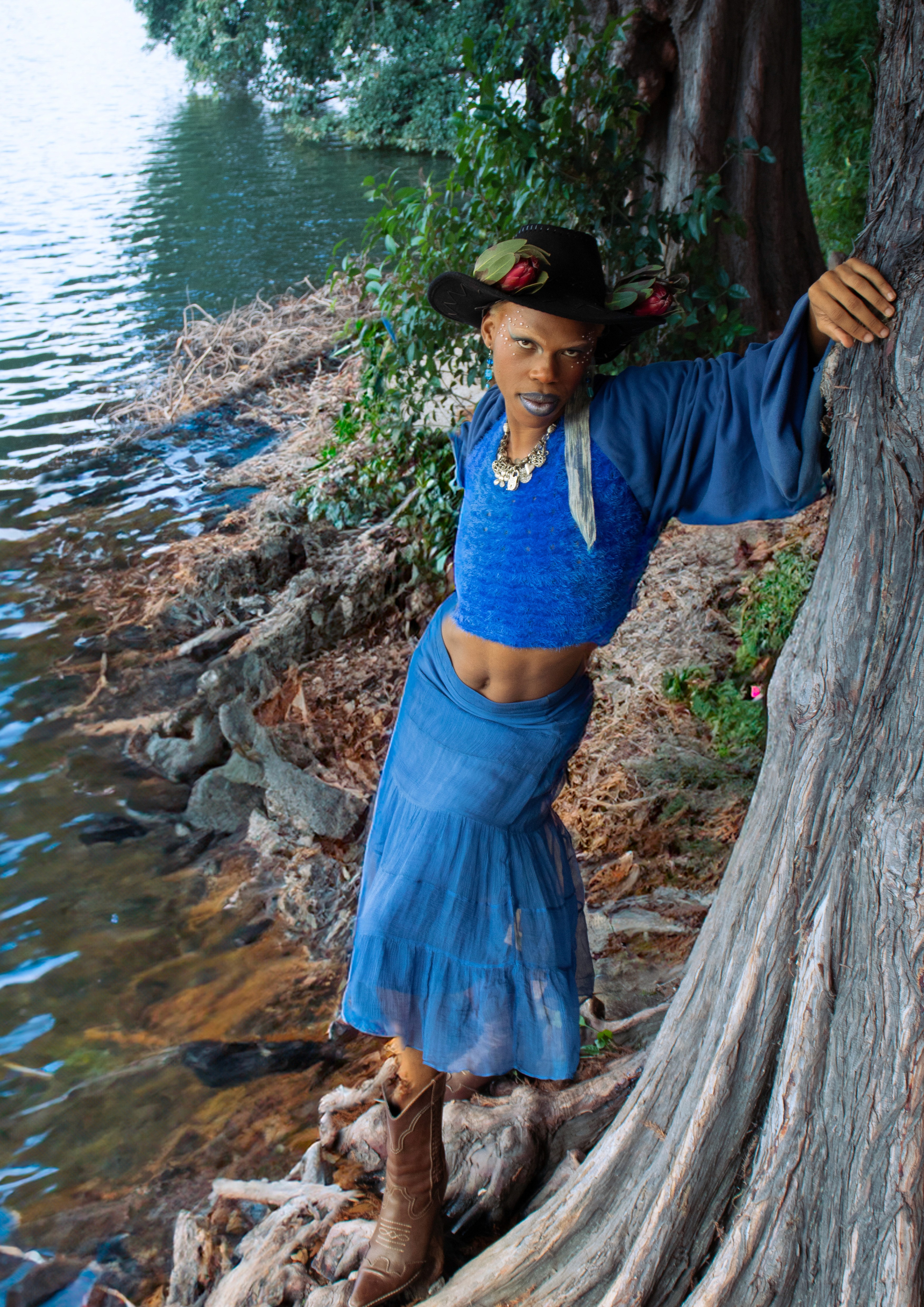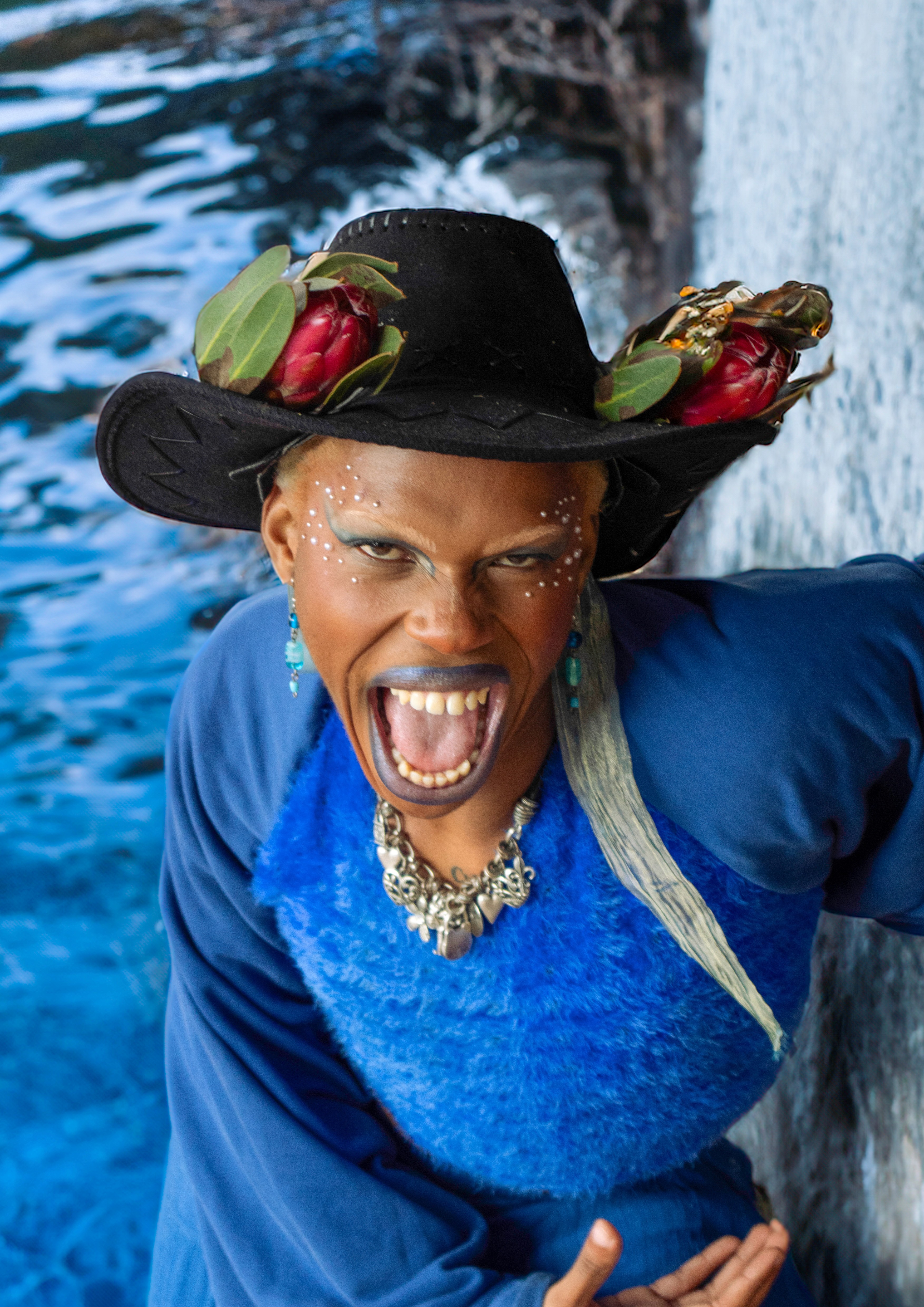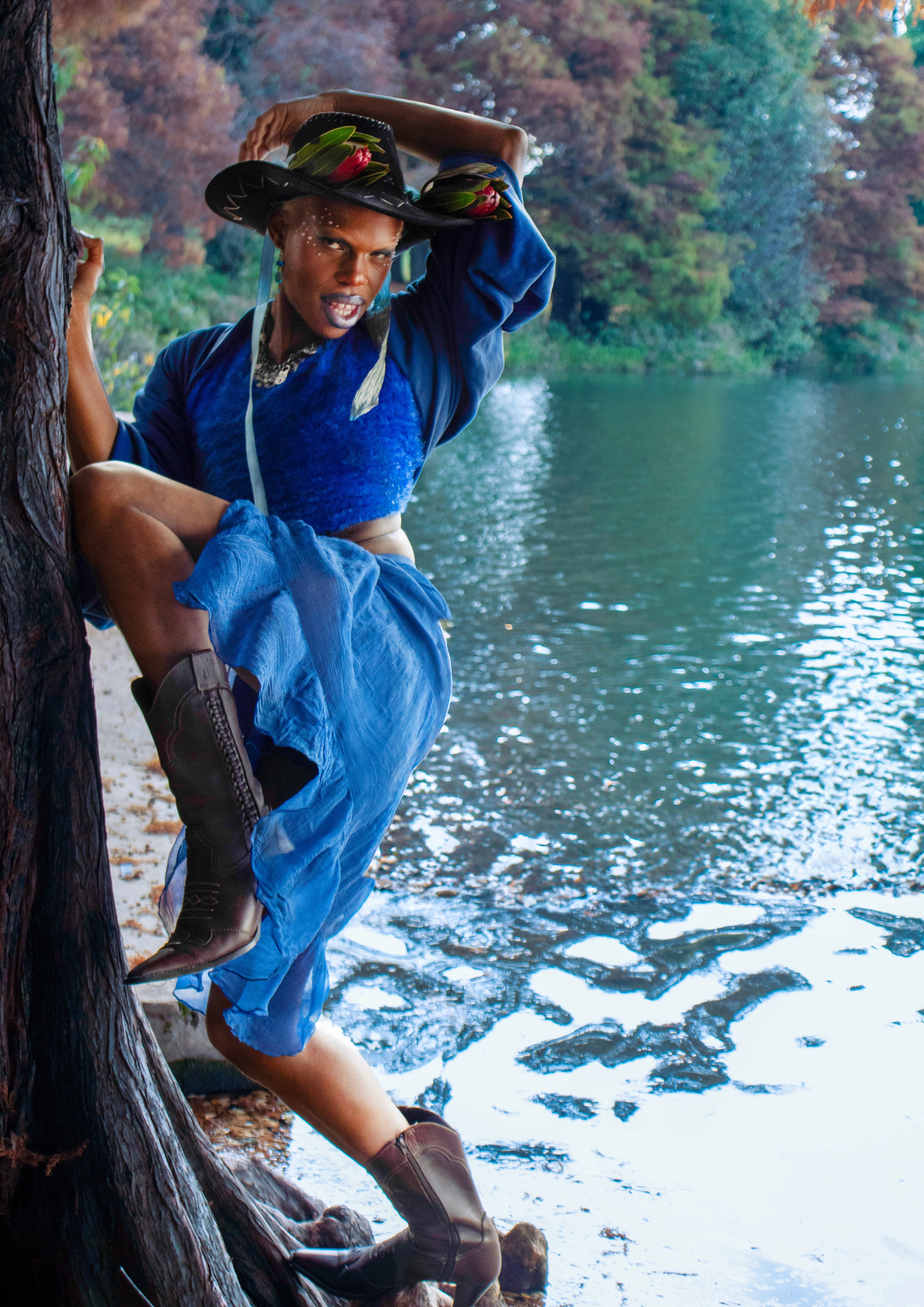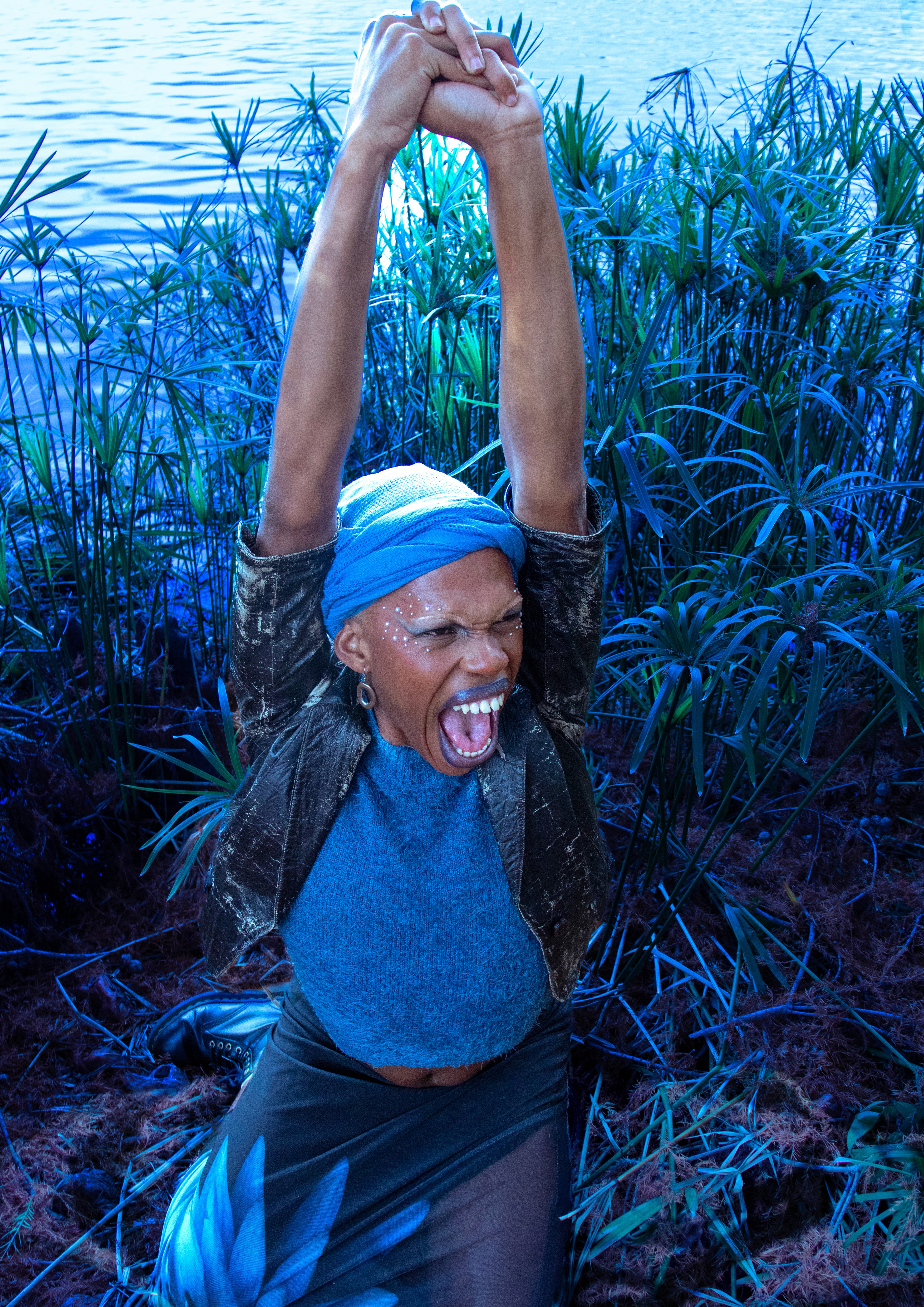 The colour blue as cliché it may sound is the start colour, the primary colour. By capturing its ethereal essence, it speaks to primal and first desire to open up and begin,the main reason for our use of the colour blue is because it represents the Throat (Vishuddha) chakra, which is the Fifth chakra which stands for expression it reinforces communication, speech and healing. “When off balance, there may be issues of self -expression, fear of no power of control. When in balance, we can express our truth without worry.