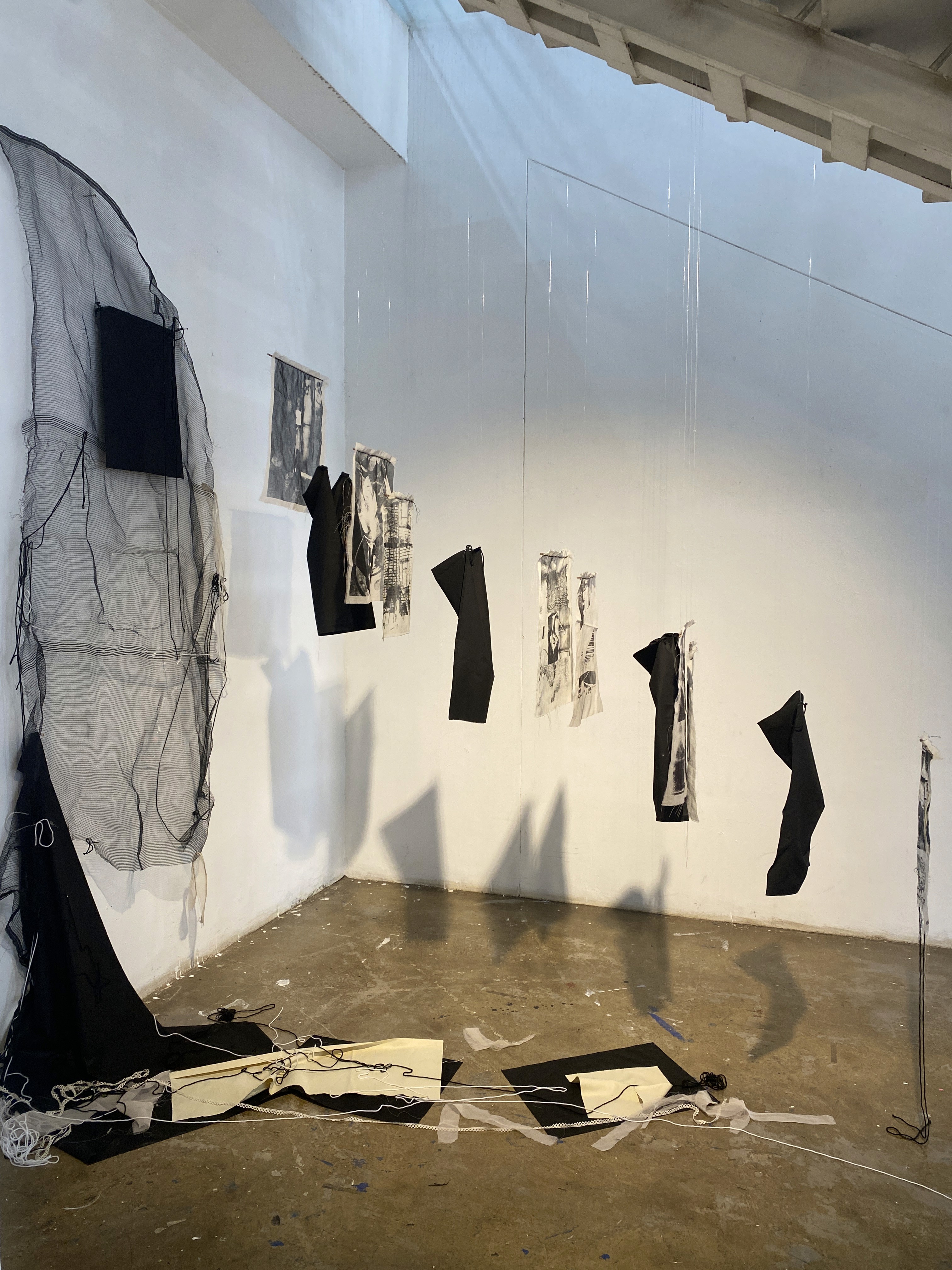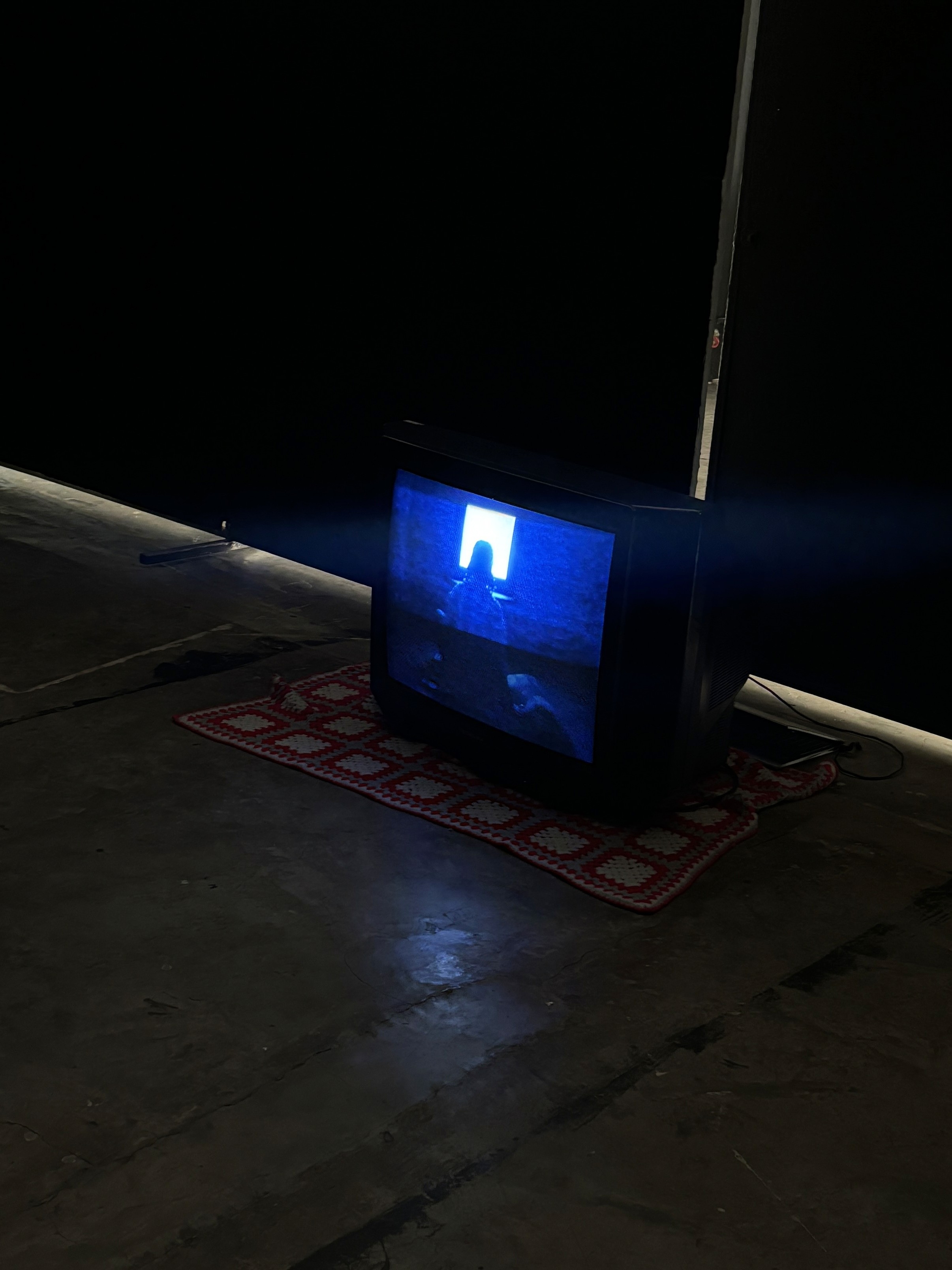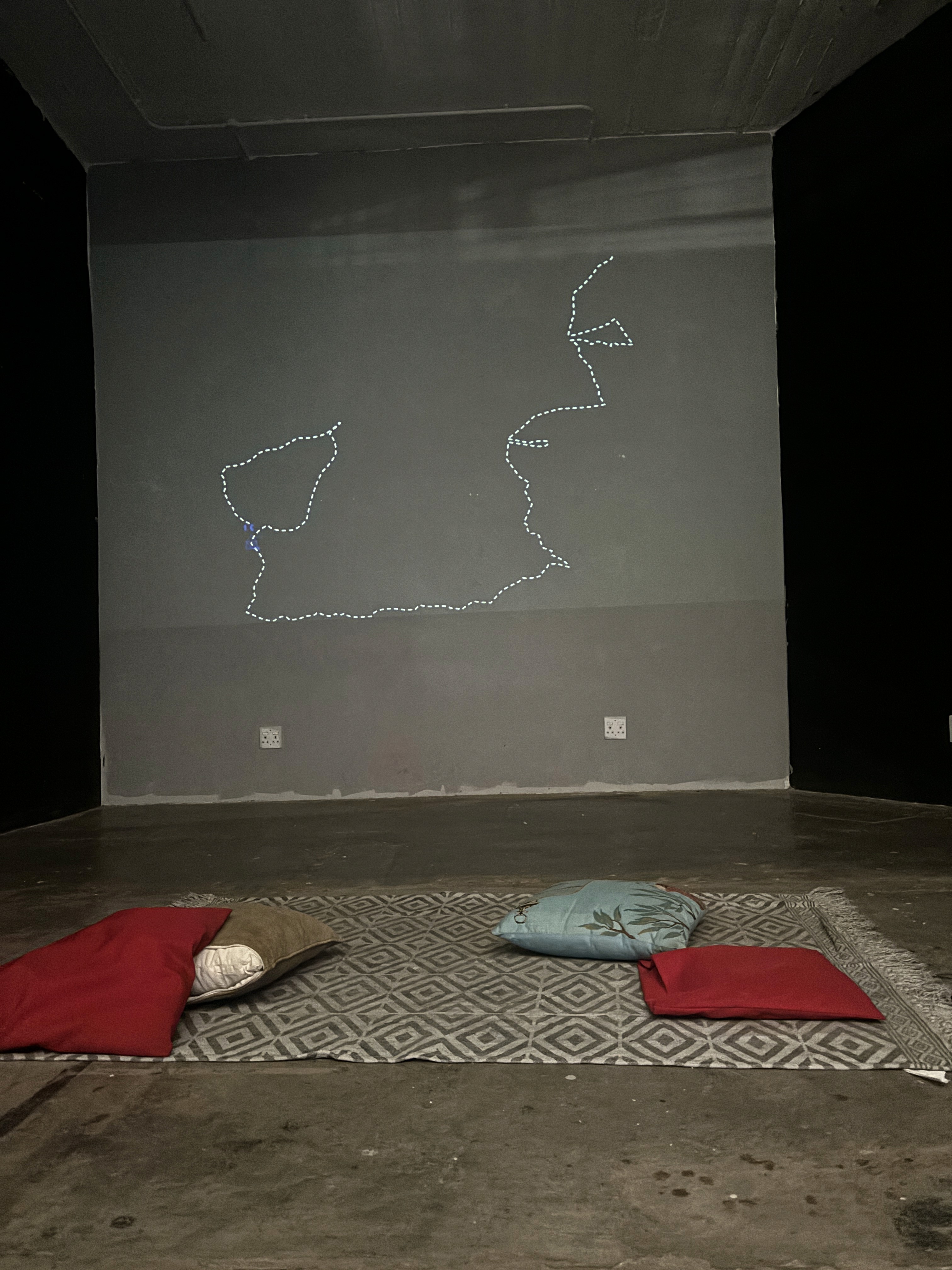 The installation creates an intimate space encapsulating a living room. Encouraging a personal connection with the work. the installation evokes presence and absence, resonating with the themes of the animations.